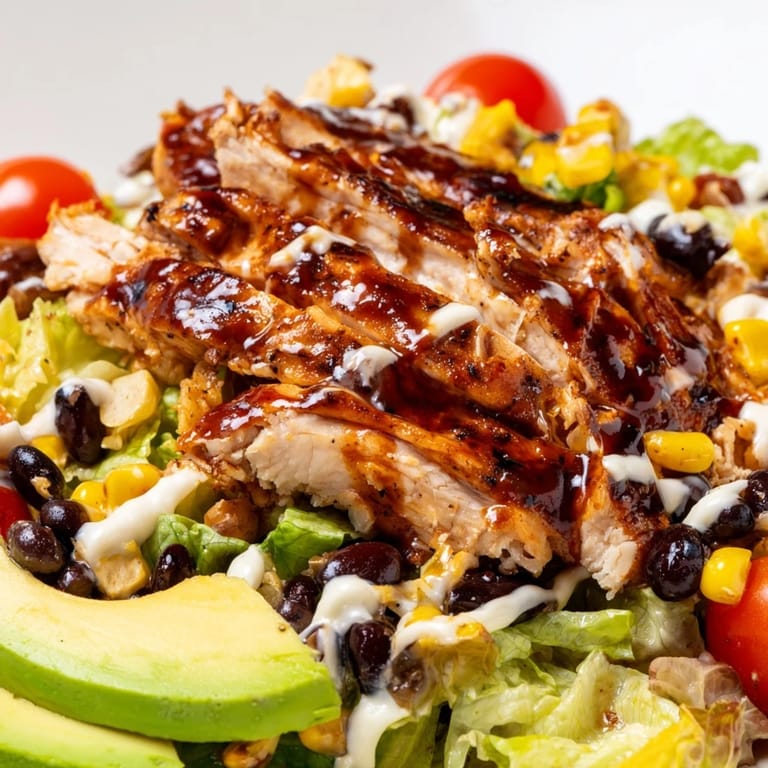 Save to Pinterest My neighbor showed up one July evening with a bag of corn from the farmers market and insisted we grill it all. We ended up tossing together whatever we had in the fridge, smoky chicken thighs slathered in BBQ sauce, some beans I'd forgotten about, and a head of romaine that was about to wilt. The smell of charred corn mixed with that sticky sweet sauce made my kitchen feel like summer camp. That accidental dinner became this salad, and now I make it every time the weather gets warm enough to justify firing up the grill.