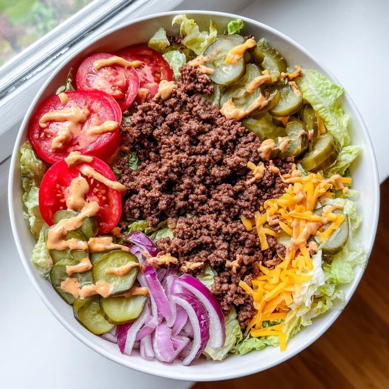 This bowl eliminates the traditional wheat-based bun entirely. All ingredients including ground beef, fresh vegetables, cheese, and the special sauce condiments are naturally gluten-free. Always check labels on pre-shredded cheese and condiments to verify no gluten-containing additives were used during manufacturing.