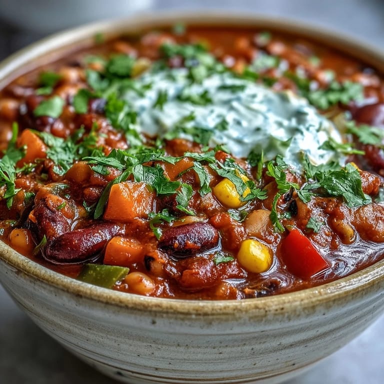 Serve this hot with whatever toppings call to you: fresh cilantro adds brightness, sour cream or yogurt adds tang and creaminess, jalapeños add heat, and cheese adds richness. I love it alongside cornbread because the chili softens the bread slightly, creating this perfect texture contrast. This chili keeps well in the refrigerator for up to 5 days and freezes beautifully for months, making it ideal for those moments when you want something hearty but don't want to cook.