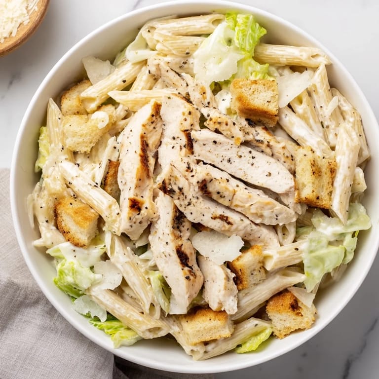 Save to Pinterest Last Tuesday my kitchen smelled like garlic and warm chicken while I raced against the clock to get dinner on the table before my sister arrived. The pasta water was bubbling furiously, and I realized I had completely forgotten to make a side dish. That frantic moment birthed this Caesar Pasta Chicken Bowl, which turned out to be better than the original plan I had abandoned.