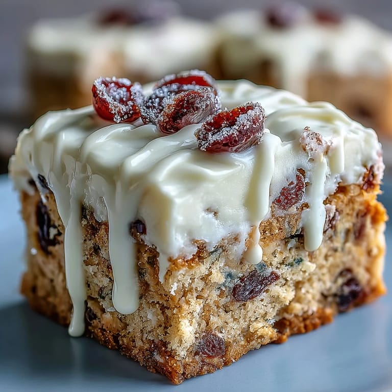 Save to Pinterest The smell of orange zest always brings me straight back to December mornings in my kitchen, when the counters are dusted with powdered sugar and the oven hums with something sweet. These bars happened by accident one year when I had leftover cranberries and a craving for something softer than cookies but more festive than brownies. The first batch came out a little overbaked, but once I spread that tangy orange frosting on top, no one seemed to notice. Now theyre the first thing my neighbor asks for every holiday season, and I make them in double batches without even thinking twice.