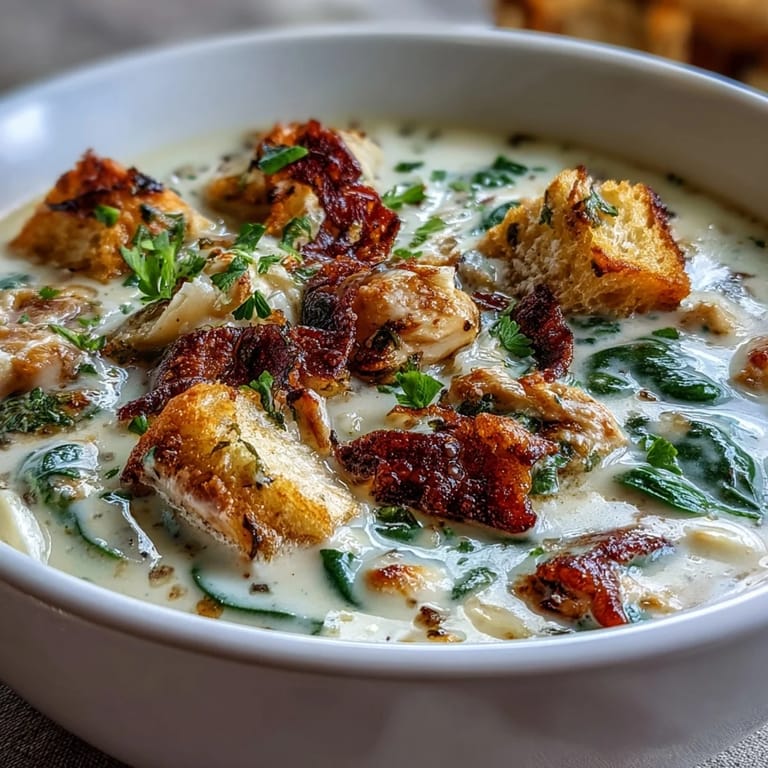 Save to Pinterest My neighbor knocked on the door one rainy Tuesday with a bag of spinach from her garden and a hunk of Parmesan she didn't need. I had chicken thawed and garlic sitting on the counter, so I threw together this soup without much of a plan. The smell that filled the kitchen made my husband appear from his office asking what restaurant I'd ordered from. That's when I knew this accidental recipe was a keeper.