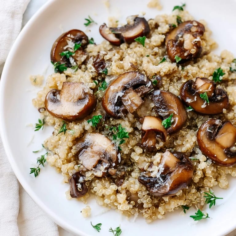 When I first made this, I thought quinoa would be too nutty or too different from traditional risotto, but it actually brings something special to the table. The quinoa has a subtle earthiness that pairs beautifully with mushrooms, and because it's more protein-dense than rice, it keeps you satisfied longer. It also cooks faster than you'd expect for a creamy dish, so you're not standing at the stove for forty-five minutes. The texture is different, yes, but in a good way—slightly firmer grains that hold their shape while still releasing enough starch to create that essential creaminess.